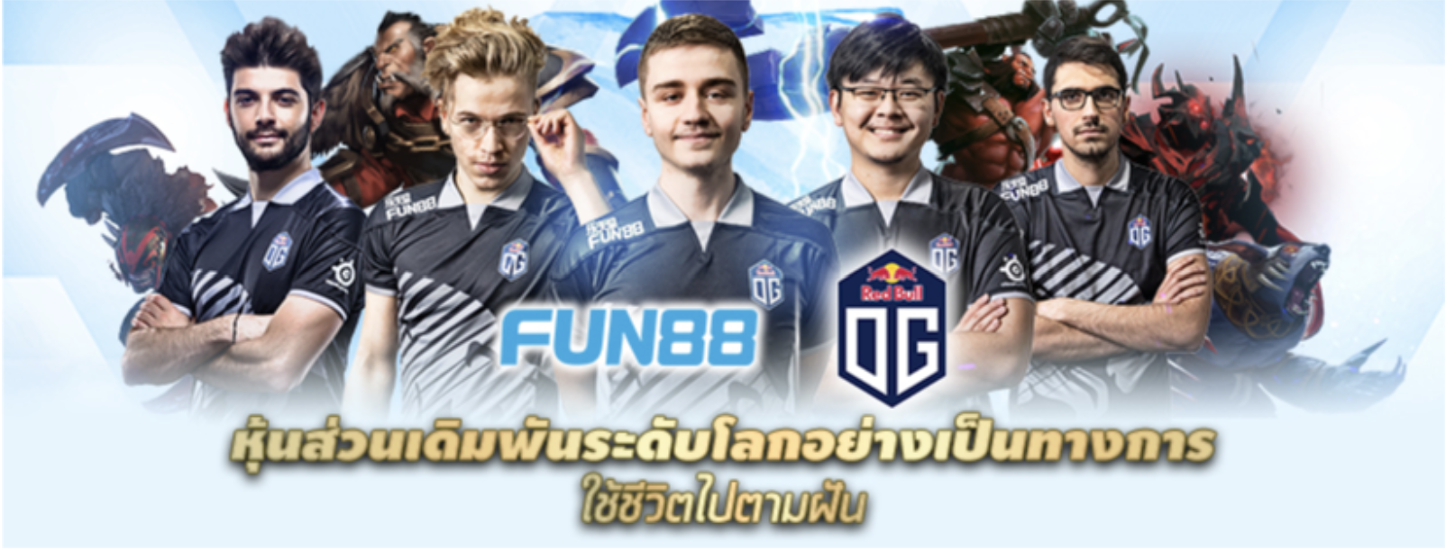 โดย FUN88 จะได้ร่วมงานกันอย่างใกล้ชิดกับทีม OG เพื่อจุดมุ่งหมายในการช่วยให้วงการ DOTA2 มีชีวิตชีวา และสร้างการรับรู้กับผู้คนหลากหลายช่องทาง เพื่อให้กีฬาอีสปอร์ตเป็นที่รู้จักมากขึ้น โดยการนำเสนอ ทั้งการเตรียมตัวก่อนการแข่งขันแบบเรียลไทม์รวมถึงการวิเคราะห์ข้อมูลหลังแข่งขัน